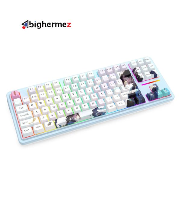 یکی از خاص‌ترین جنبه‌های این کیبورد، ظاهر آن است. ترکیب رنگ آبی روشن با طرح‌های خاص و الهام‌گرفته از انیمه، جلوه‌ای منحصر به فرد و جذاب به K728 PRO AK می‌بخشد. این طراحی فراتر از یک ابزار گیمینگ، به یک قطعه هنری روی میز شما تبدیل می‌شود. این ترکیب رنگی، به ویژه برای کسانی که به دنبال یک ستاپ گیمینگ متفاوت و بیانگر شخصیت خود هستند، یک انتخاب عالی محسوب می‌شود. این زیبایی بصری، به همراه نورپردازی RGB پویا، یک تجربه کاربری کامل و لذت‌بخش را فراهم می‌آورد.